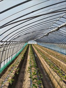 7棟分の定植作業、予定通りゆっくり丁寧に進めて、ようやくほぼ完了しました。