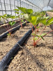 石橋農園ではマルチングまでの期間、チューブ灌水とシャワー灌水を併用しています。