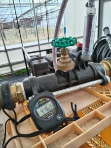 液肥の混入機を調整しながら、1棟ずつ丁寧に水と栄養を送っていきます。